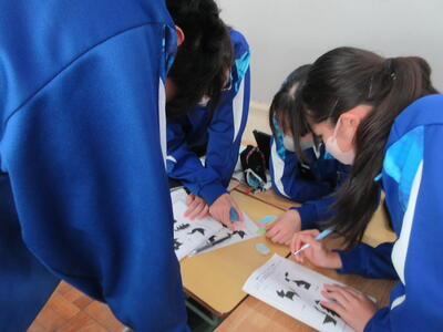 1・2時間目は3年生で「早春の風景」。3・4時間目は2年生で「美しい山河」。5・6時間目は1年生で「花の季節」。