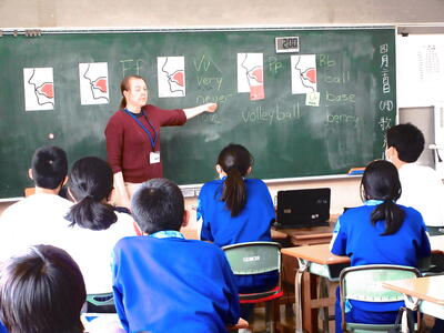 英語では南アフリカ出身のクリスティン先生が、当然といえば当然なのですが、見事な発音で授業を進めます。自己紹介から始まり、英語特有の発音の仕方などを生徒とやりとりを行いながら、わかりやすく指導していきます。