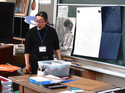 美術室では流山どころか、千葉県、いや日本有数の美術教師、石原先生によるデッサンの仕方について授業が行われています。まるで美術大学の講義のよう。こういった授業を受けられる生徒は幸せです。