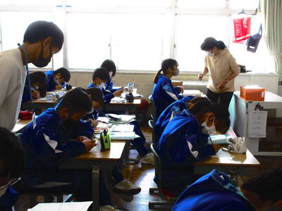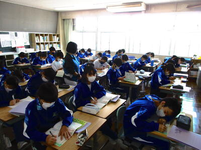 そんなおいしい給食を食べている子ども達は、6校時であっても全く集中が途切れません。頑張る子ども達の姿がまぶしく映る午後の南流中でした。