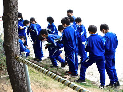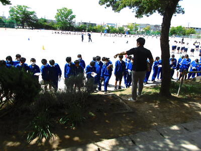 グランドに目を移すと、1年生の理科の授業で「野外観察」が行われています。普段は見過ごしてしまう草花にも、先生の言葉かけで目をこらして記録を取る子ども達の姿があります。この中から未来の「牧野富太郎」が生まれるかも。そんなたくさんの可能性を秘めた子ども達に日々対面でき、成長を見届けられる教師という仕事は本当にやりがいの塊です。