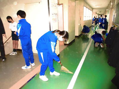スポーツテストのシャトルランなど、6時間フルの授業が終わって疲れ気味の子ども達もいると思いますが、南流中生は一日の終わりの清掃に一生懸命取り組みます。
