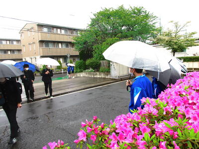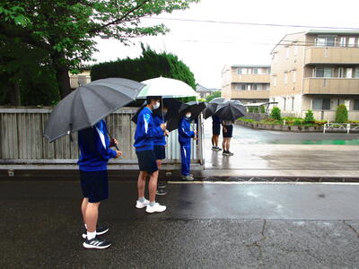 おはようございます!!流山は、生憎の雨の天気です!!でも、南流中生は、傘を差しながら、元気に登校しています!!雨ニモ負ケズ、今日も1日スタートです!!