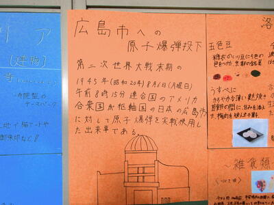 3年生の子ども達は、自分達とほぼ同世代の多くの若者が命を絶つこととなってしまった現実に言葉を失います。未来への夢や希望を持ち、これからまだまだ長い人生があったであろうたくさんの広島の子ども達。