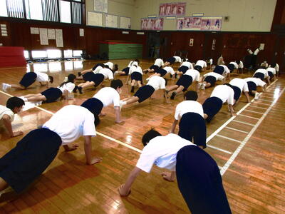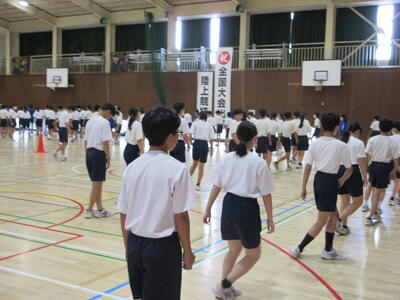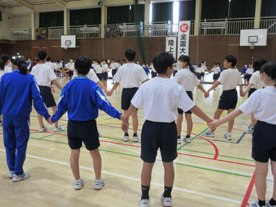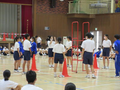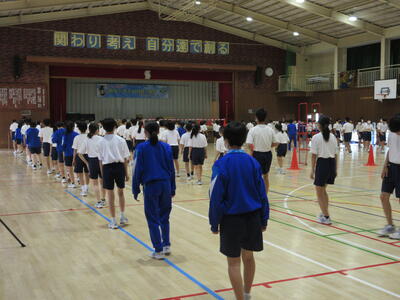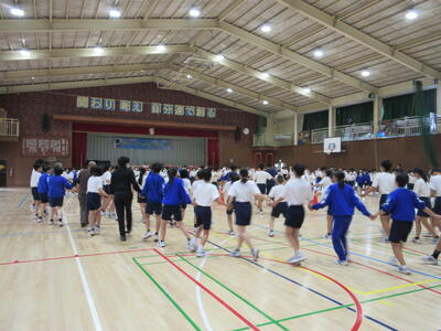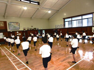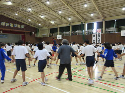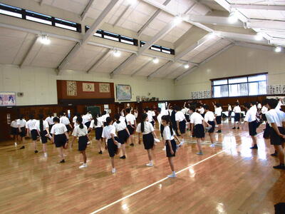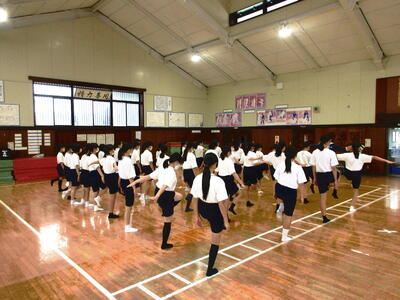 本日、3年生が修学旅行に行きました!!3年生のいない学校は、どこかヒッソリとしていますが、残っている1・2年生は、いつもと変わらずに生活をしています。そんな中、2年生は来月の林間学園に向けて、今日は、体育館でキャンプファイヤーのダンス練習をしました!!実行委員の話をよく聞いて、Let’s Dance!!