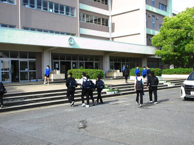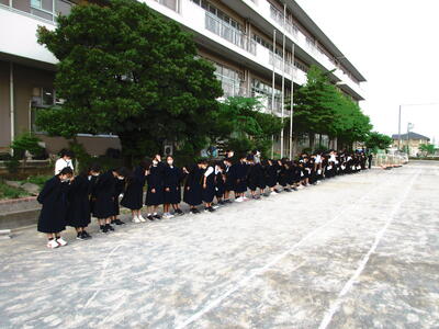 今日の天気は昨日と打って変わって見事な日本晴れ。南流中生を祝福してくれています!
