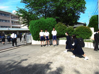 ☆5月24日(水)本日は快晴なり!!1・2年生であいさつ運動してます!!