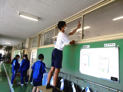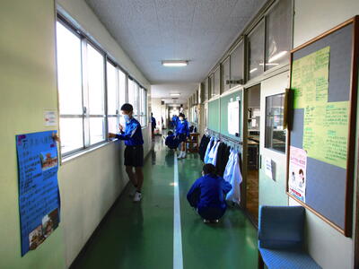 本日、PTAの学年委員のみなさんに、本校の2階3年生の教室、4階1年生の教室の窓拭きボランティアを行なっていただきました!!普段の生活の掃除では、生徒の安全上、拭くことのできない上の方の窓もキレイに磨いていただきました!!ピカピカの窓からは、午後の日差しもキレイに入ってきます!!PTAさんの窓拭きボランティア中には、1年生の生徒が元気な声であいさつしてくれていました!!さすが、南流中生!!自ら、あいさつのできる素晴らしい姿がありました!!