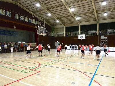 序盤、本校バスケ部は硬さも見られましたが、じわりじわりとリードを広げ、前半が終了して43-22。後半、相手の粘りに苦しむ場面もありましたが、本校も負けじと見事なプレーの連続で最終的には85-48で勝利を収めました。