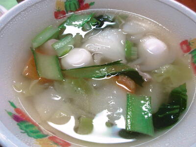 「コッペパンがいつもに増してとっても柔らかく、おいしかったです!!鶏肉とアスパラガスのグラタンは、チーズの風味がよく、旬のアスパラガスがおいしく食べられました!!にんじん、タマネギ、キャベツ、もやし、コーン、小松菜など具沢山の野菜スープは、味が良く食べやすく、野菜が好きな子もそうでない子も食が進む一品です!!季節外れの寒さとなっている今日、心も体もあったかくしてくれました!!デザートのマスカットゼリーもおいしく、今日も最高の給食でした!!ごちそうさまでした!!」