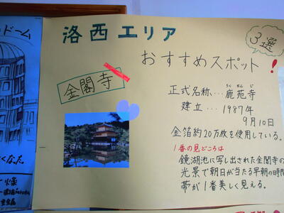 清水寺や伏見稲荷大社、金閣や銀閣、北野天満宮、平安神宮や八坂神社、京都御所などの京都の名所を半日かけて、グループで見学。