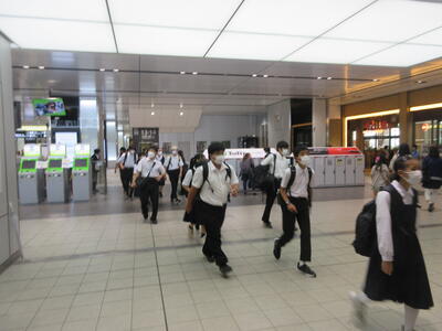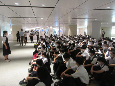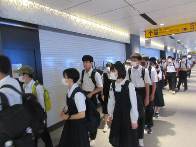 広島駅と直結した大変豪華な「ホテルグランヴィア広島」で一夜を過ごした3年生。今度は京都へ向けての新幹線乗車のため学年での移動となります。