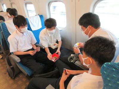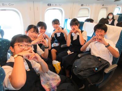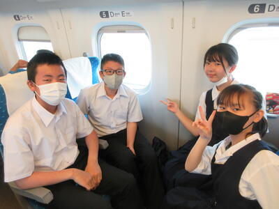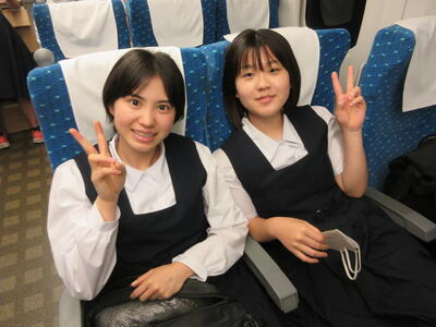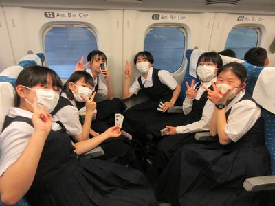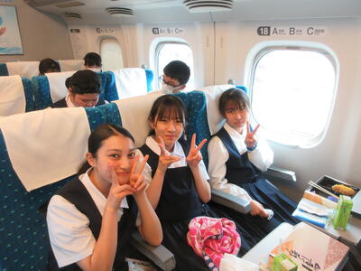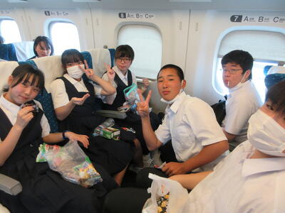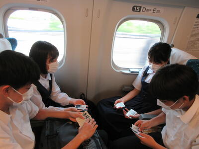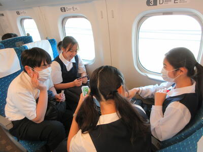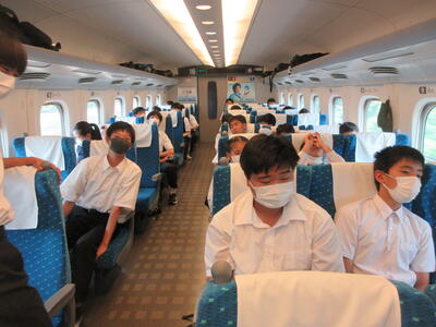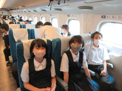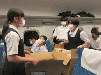 新幹線は広島駅始発のため、停車時間も長く比較的ゆっくりの乗車でも構わないのですが、乗車練習を行っている3年生は実に素早く行動します。JTBの方からも「生徒さん達、ものすごいスムーズですね!」とのお褒めの言葉。