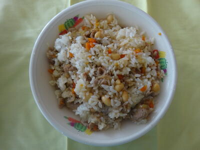 特にふりかけは、たくあん、ちりめんじゃこ、ごまを炒めて、しょう油、みりん、酒で味をつけた調理員さんこだわりの一品。たくあんのパリパリ感とごまの風味が香ばしく、ごはんにもぴったりです。!