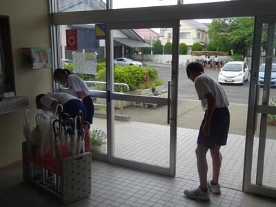 今朝は久しぶりの雨。登校時間帯には雨脚も強くなってきましたが、生活委員会の「あいさつ運動」として、子ども達は校門付近で元気よく挨拶を交わします。中には生活委員の顔をしっかりと見て、にこやかに挨拶する子もいます。何て素敵な光景なんでしょうか。