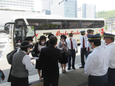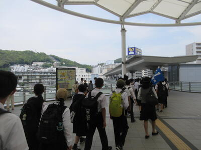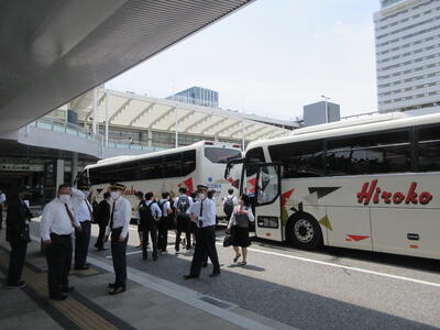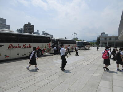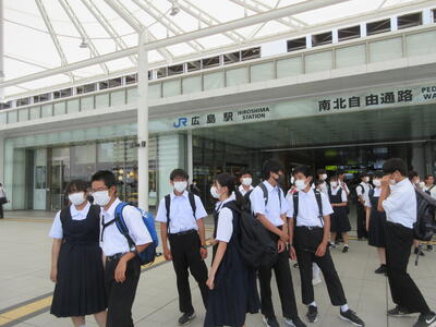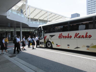 昼食後の片付けをしっかりと行い、各自トイレも済ませ、いよいよ終点、広島駅に到着です。昨日までG7サミットが行われていた、そして、世界が注目した平和都市広島での学習が始まります。