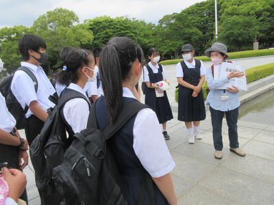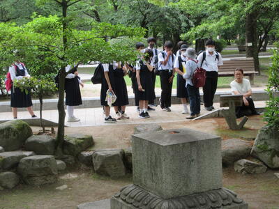 これからグループごとに分かれ、原爆の語り部の皆さんからのお話をうかがいながら、平和記念公園を一時間ほど見学します。