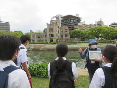 しかし、忽然と表れる「原爆ドーム」によって、一気にそうした気持ちが打ち破られます。いよいよ、ここからが平和学習の集大成です。