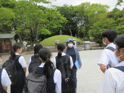 見渡してみると、外国人観光客が多く、修学旅行で訪れているのは本校と一部の小学校のみ。こんなことが修学旅行で実現するとは奇跡であり、感慨深いものがあります。