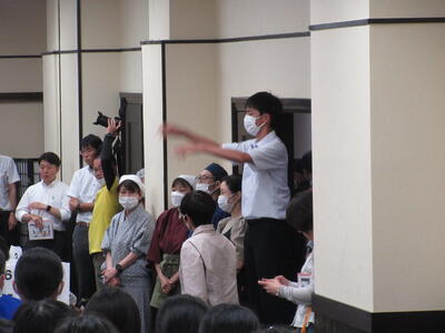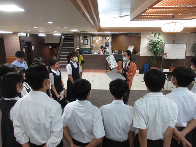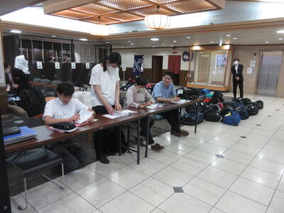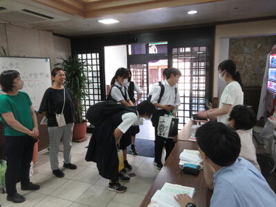 その後、実行委員たちはロビーに集合。宿の方へ「よろしくお願いします!」の挨拶を行いました。