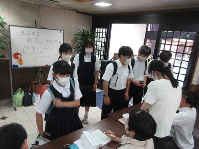 一方、南流中生も社会の時間に、鴇田教頭先生渾身の平和学習で多くのことを学び、深く、深く考えて続けてきた成果が表情に表れています。語り部さんから一時たりとも目をそらさない生徒の姿。何て神々しい姿なんでしょう! 真剣に話を聞く子ども達の姿に語り部さんも、たくさんの説明で応えてくれます。