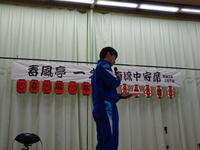 〇流山市生涯学習センター多目的ホールにて、葛北支会中学校英語発表会が行われました。野田市と流山市の各中学校代表1名が、自作の英文を発表する会です。本校からは、3年生の熊坂実桜さんが、「Never give up」というタイトルで、部活動を通して学んだことを堂々と発表しました。