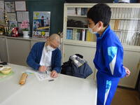 〇オランダ代表(卓球・女子ハンドボール)が、流山市キッコーマンアリーナで事前練習を行っています。歓迎式典にて、市内小中学校が作成した応援幕の贈呈を行いました。応援幕を作成した美術部の代表として、2名が式典に参列しました。