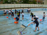 台風14号は、流山市には大きな影響なく関東地方から離れていきました。今日もすっきりとしない天気ではありましたが部活動や大会に励んでいる南流中生。女子バスケットボール部が部活動の前に校門付近の落ち葉を掃いてくれていました。