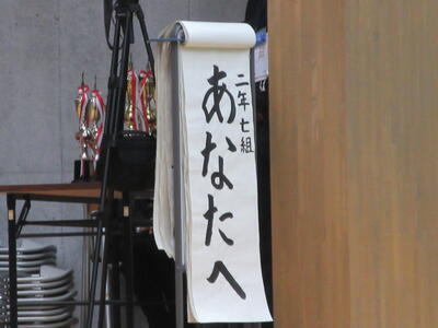 2年生が歌う合唱曲の歌詞を織り込んで作ってくださった力作!! 2年生の子ども達もきっと「あっこれ、うちのクラスの合唱曲の歌詞だ!!」と発見するはずですね。河崎先生、本当にありがとうございます!!
