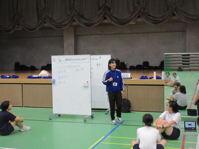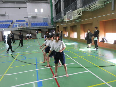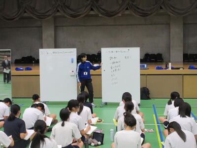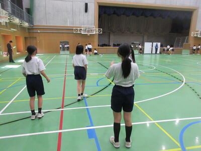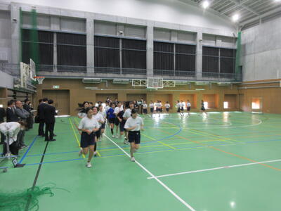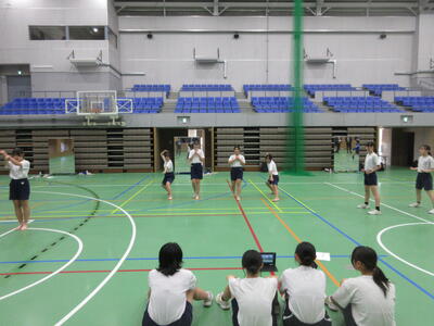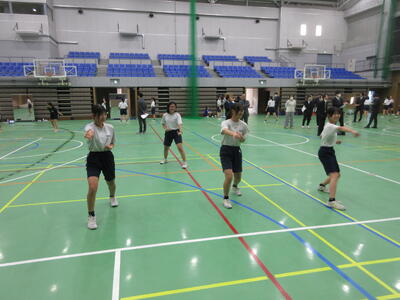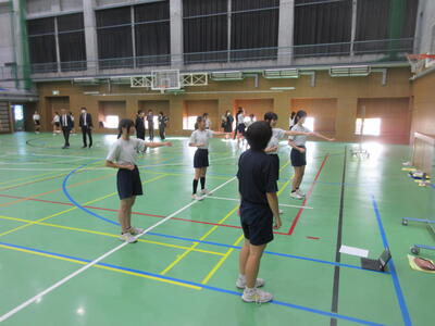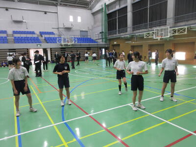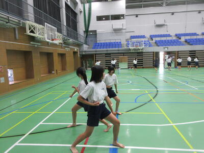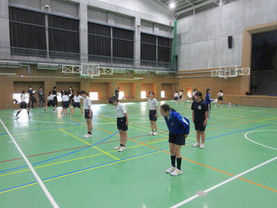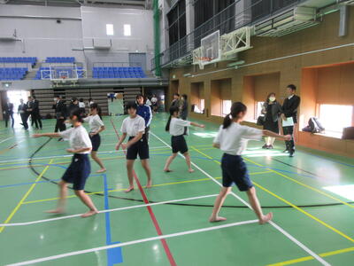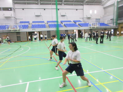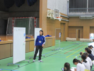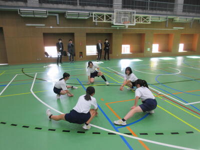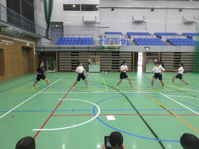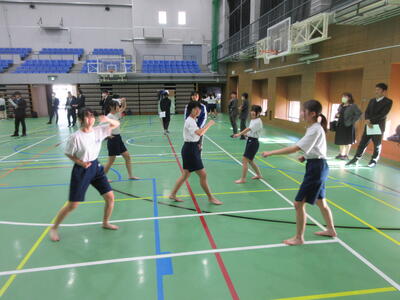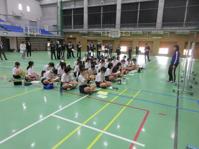 本日午後、流山市教育研究会の中学校保健体育部会が、本校第2体育館を会場に行われました。この研究会には市内中学校の保健体育科の先生方が多数集結。3年6・7組の女子体育「空手」を題材とした鮒藻先生の研究授業を参観されました。