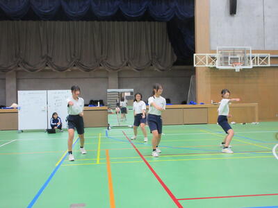 授業の中では、子ども達がグループごとに創作した空手の型を披露。音楽に合わせリズムに乗ったそれぞれの型は、キビキビとした動きの中にも、楽しさがあふれています。やる気に満ちた子ども達の姿は最後まで変わらず、楽しさ一杯の空手の授業時間はあっという間に終了しました。