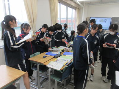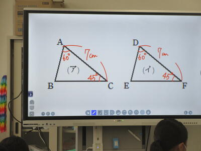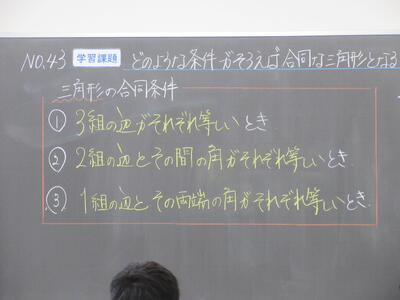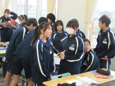 ▼数学では、今日も課題について話し合いながら授業が進められていました。互いに課題解決へ向け考え、討論する過程で、思考力・判断力・表現力が養われていきます。
