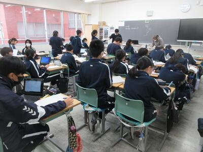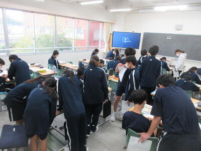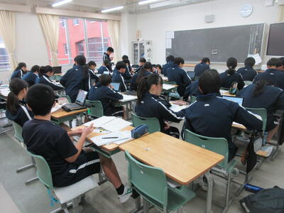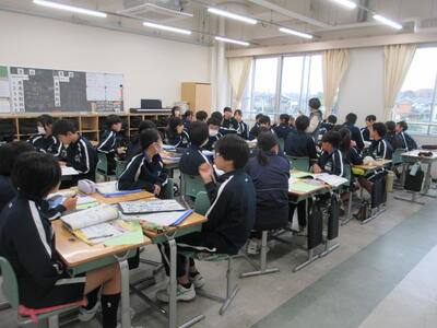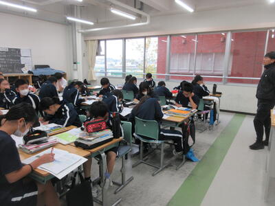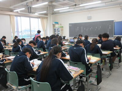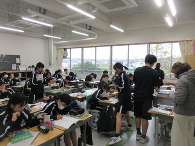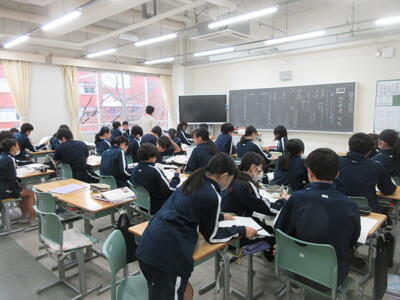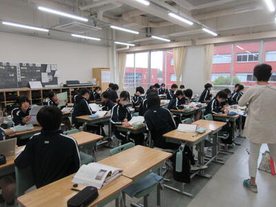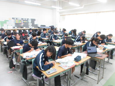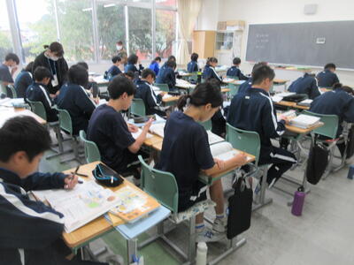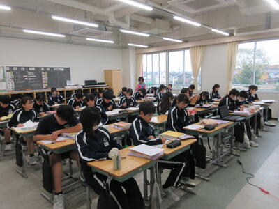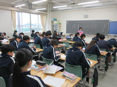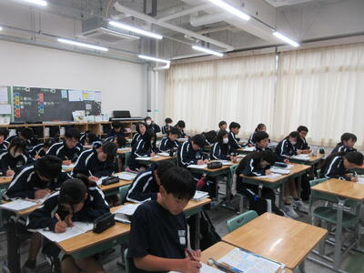 ▼2年生の授業の様子です。3年生に続き来週18日(火)19日(水)の「後期中間試験」を控え、明日からはスタディウィーク。部活動の朝練習もなくなり、勉強に集中して取り組んで欲しい6日間になります。子ども達の授業への集中もますます高まっているようです。