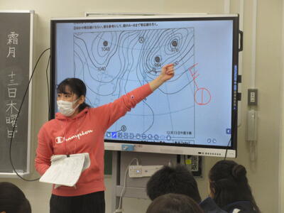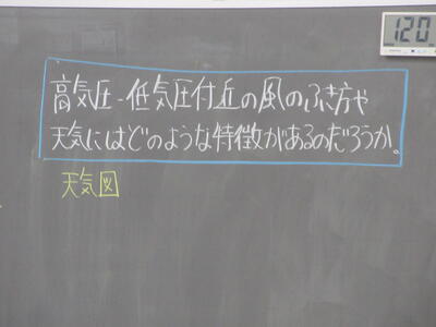 ▼理科の授業では「高気圧・低気圧付近の風の吹き方や天気には、どのような特徴があるのだろうか」をテーマに、グループごとに天気図を読み解いていきます。