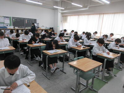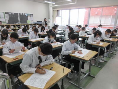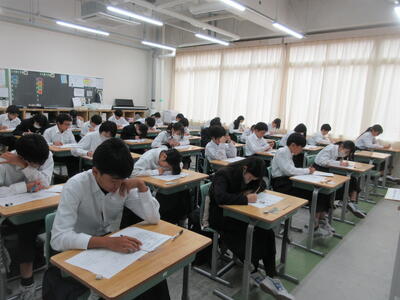 ▼1・2年生のテストが始まりました。みんな、頑張れ!!