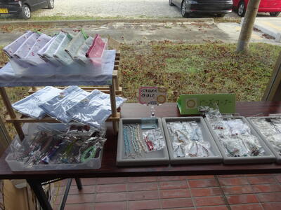 明日はいよいよ南風祭!今年も、会場近くで恒例の「ひまわりバザー」を実施します!!(南風祭1日目に実施) ひまわり学級の生徒たちが、一つ一つ丁寧に制作したエコクラフトやリース、ビーズ製品、布製品などがたくさん販売されます!! 会場は、第2体育館の玄関ロビーです!合唱コンクール参観の前後に、ぜひお立ち寄りください!! ※以下、とっても素敵な手作り製品のラインナップを先行公開!!