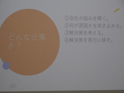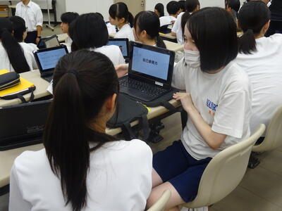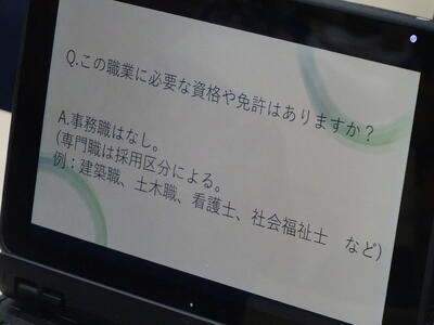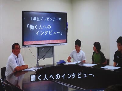 「職業インタビュー」をテーマにプレゼンに挑戦している1年生。夏休みに身近な大人にインタビューをしてわかった、職業の特徴や働く上で求められる力などを、パワーポイントで作成したスライドを提示しながらプレゼンします!アルバ・エデュの先生方からは、「調べたことの報告だけでなく、自分はそこから何を得たのかなどを伝える『自分が主役』のプレゼンになっているか」「文字ばかりのスライドになっていないか」「スライドのアニメーションは本当に必要なものか」など、プレゼンの改善点を教えていただきました!一人ひとり、集中してプレゼンの改善に取り組み、仲間とプレゼンし合うことで、その成果を確かめていきました!1年生、すごい集中力と吸収力でした!!