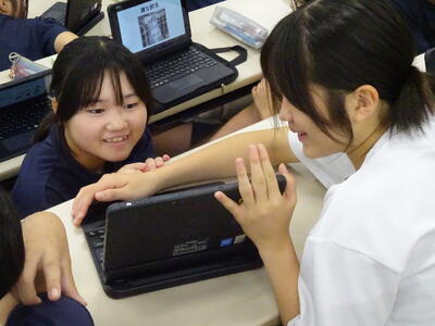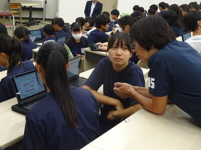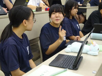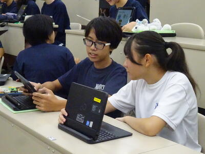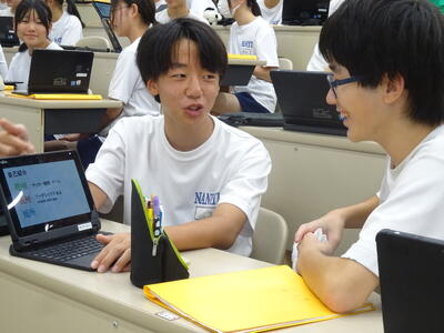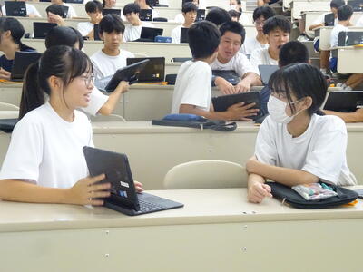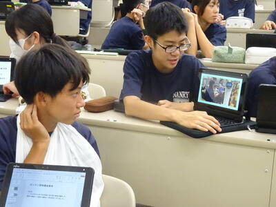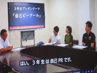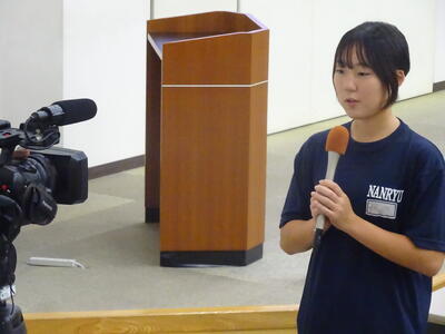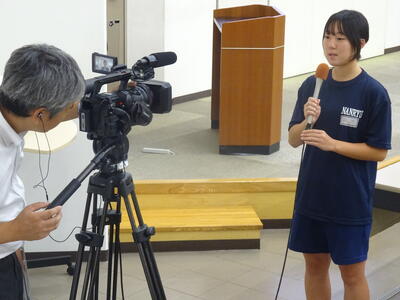 授業終了後には、3年生代表の趙さんと岡田さんがJ:COMのインタビューに応えてくれました!!今回の授業の様子やインタビューは、9月27日(土)~10月3日(金)の期間に、J:COMの「ジモトトピックス」という番組で放送されます!期間中、平日は7時、11時、20時30分に、土日は11時、17時、20時30分に再放送されます!また、地域情報アプリ「ど・ろーかる」でも配信され、アプリでなら9月27日以降はいつでも見られます!ぜひ、ご覧ください!!