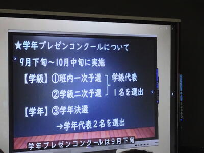 南流中ではこの2学期、全校生徒が参加する「プレゼンコンクール」を実施します!学年ごとに決められたテーマについて、一人ひとりが自分で調べたり考えたりしたことを基に、自分の「イイタイコト」を仲間と伝え合います!9~10月に「班内一次予選」「学級二次予選」「学年決選」とコンクールを進め、各学年の代表者には10月31日(金)の南風祭(2日目)でプレゼンを披露してもらいます!各学年のテーマはこちら!