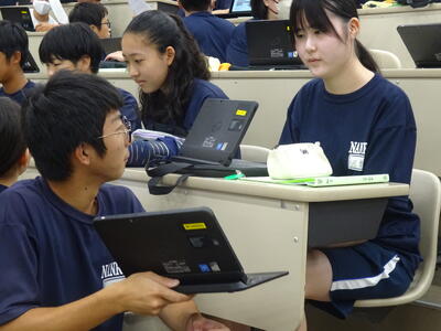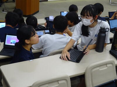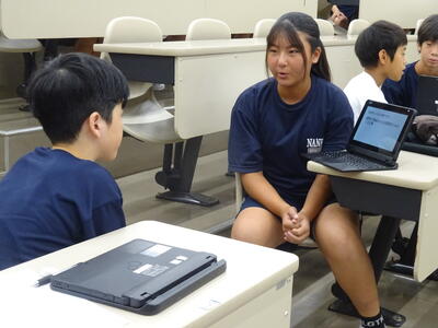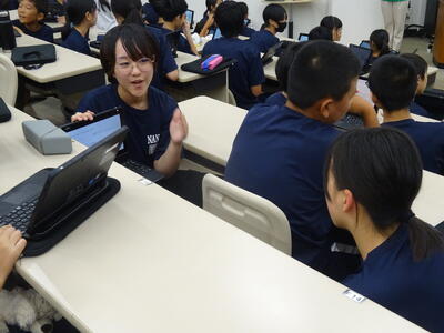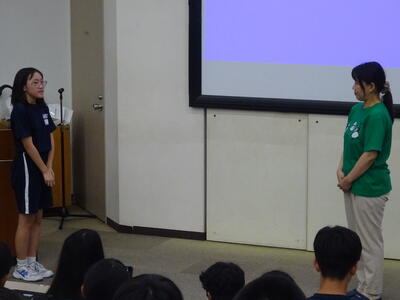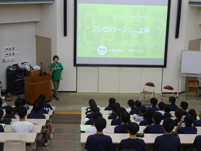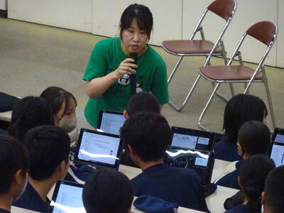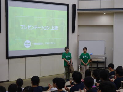 9月16日(火)の南流中は「プレゼン研修日」!! 各学年2時間ずつ、特別講師をお招きして、ホールで学年一斉・特別授業を行いました!特別講師の先生方は、アルバ・エデュの蝦 真理子先生、三浦 嘉子先生です!!