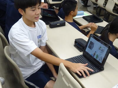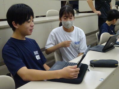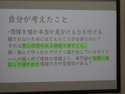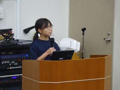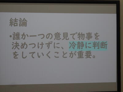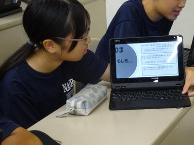 2年生は「社会問題」がテーマ!夏休みに調べて作成してきたスライド資料を覗いていくと、「少子高齢化」「環境保全」「戦争・テロと平和」「フードロス問題」「SNSの誹謗中傷」「フェイクニュース」など、実に多様な課題について調べてきています!入学から1年半、さまざまな教科の授業や行事でプレゼンに取り組んできている2年生、堂々と話す姿に成長を感じます!アルバ・エデュの先生方からは、「よく通る声を出すための発声練習」や「冒頭に心を動かす話やスライドを持ってきて、ストーリー性のあるプレゼンにするとよい」などを教えていただきました!