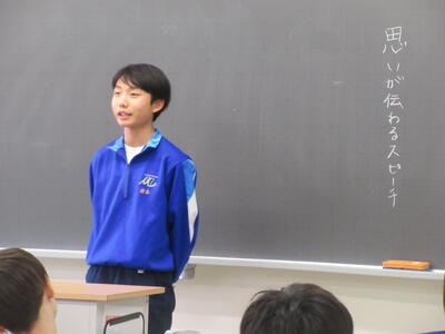 ▼こちらの国語の授業では「思いが伝わるスピーチ」を題材に、子ども達によるスピーチが行われていました。A棟2階の3教室は全て発信型の授業が行われています。