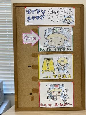11月最後の授業日となった今朝の南流中。校舎西門先のT字路には、いつもと変わらず三村さんと稲川さんが立って、自転車通学者の安全を見守ってくださっています。 今月もありがとうございました!! また、職員室では、スクールアシスタントの益戸先生や渡辺副校長先生の可愛いイラストが、先生方を温かく見つめています。