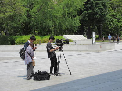 これからグループごとに分かれ、原爆の語り部の皆さんからのお話をうかがいながら、平和記念公園を一時間ほど見学します。