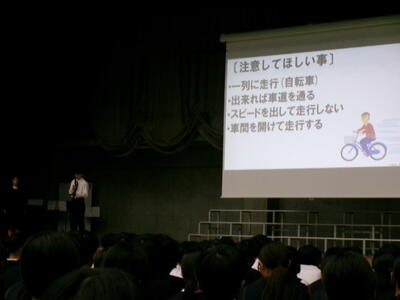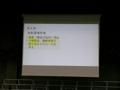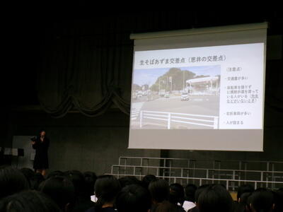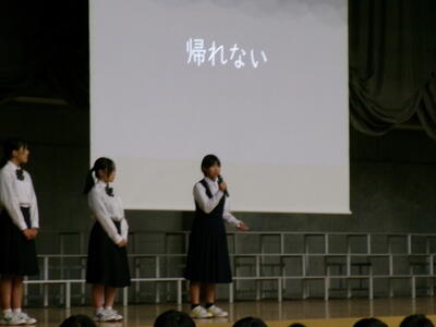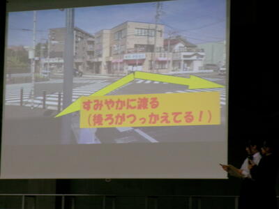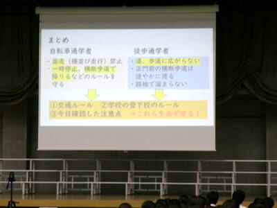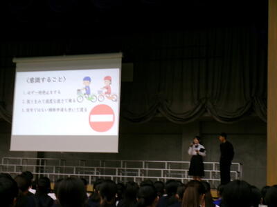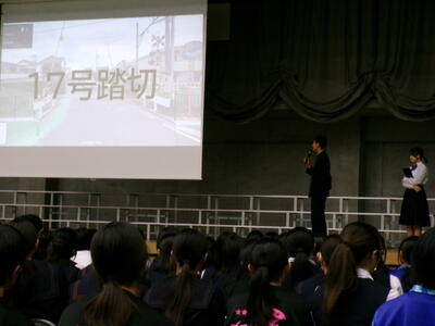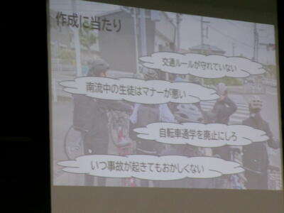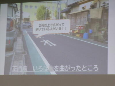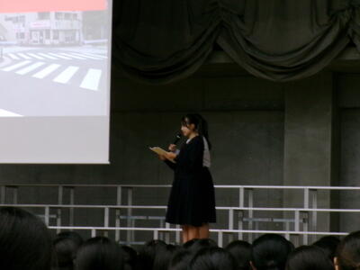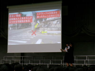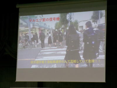 ▼生活委員会からの登下校時の安全についての発表。良く調べ上げ、自分たちで考え、具体的に提案してくれました。