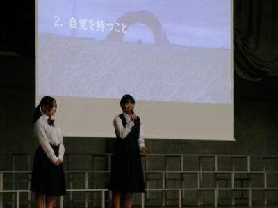 ▼最後は生徒会の引き継ぎが行われ、前期から後期へと、そして学校全体のリーダーが3年生から2年生へと引き継がれました。