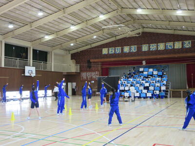 3年生は体育館で人文字やダンスの練習。一人も間違えられない人文字はタイミングもバッチリ。そして、ダンスのキレッキレの動きはまるでプロのようです。