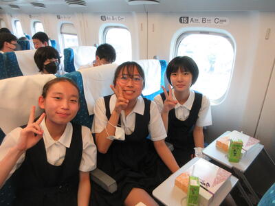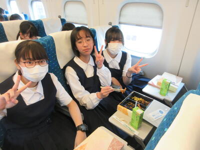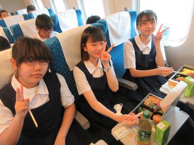 1日目の昼食は新幹線内です。おやつを食べたとは言え、朝が早かったせいもあり、お腹はペコペコ。豪華なお弁当を前に子ども達も笑顔があふれます。 昼食後の片付けをしっかりと行い、各自トイレも済ませ、いよいよ終点、広島駅に到着です。昨日までG7サミットが行われていた、そして、世界が注目した平和都市広島での学習が始まります。 3年生のみんな、いよいよだね!! 頑張れよ!!