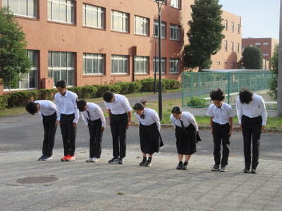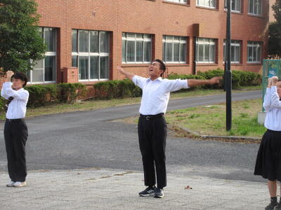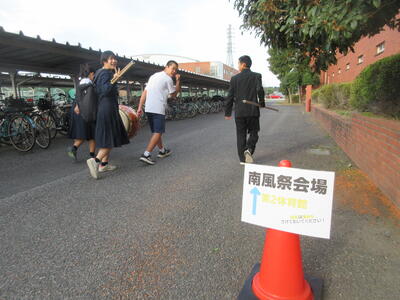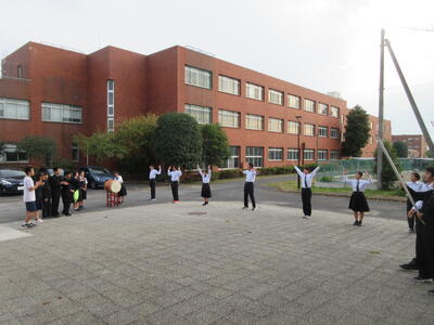 ▼第2体育館の玄関前では、新旧応援団による引き継ぎ練習が行われています。初々しい新全校応援団の姿。明日の正式なお披露目の場でどんな雄姿を見せてくれるか楽しみですね。