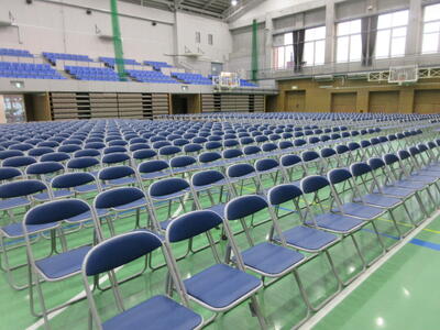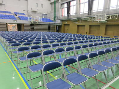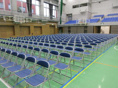 ▼1階のフロアの生徒席。800人を超える生徒達が一堂に会します。